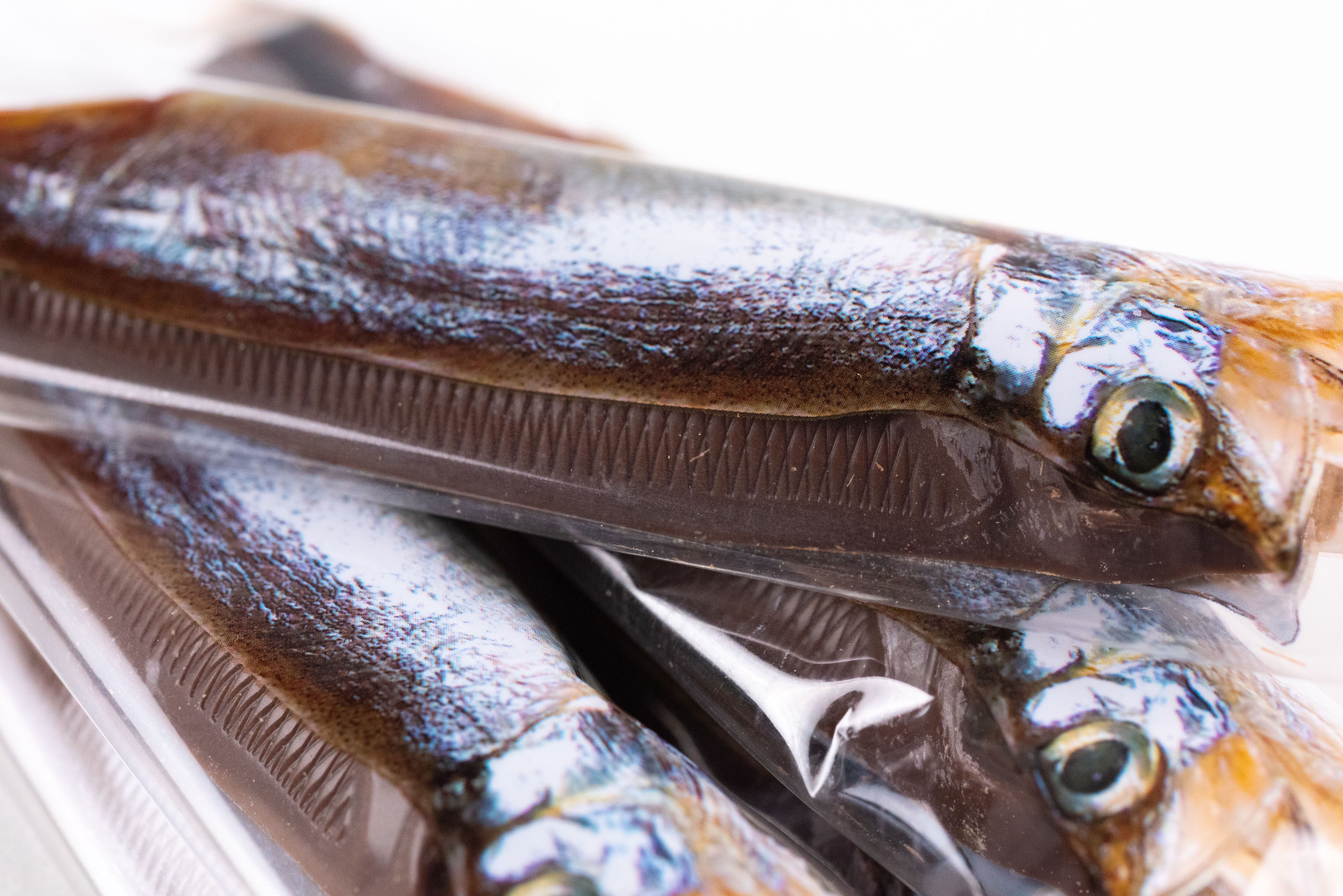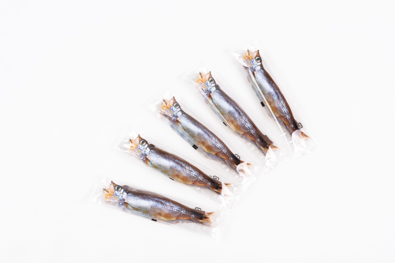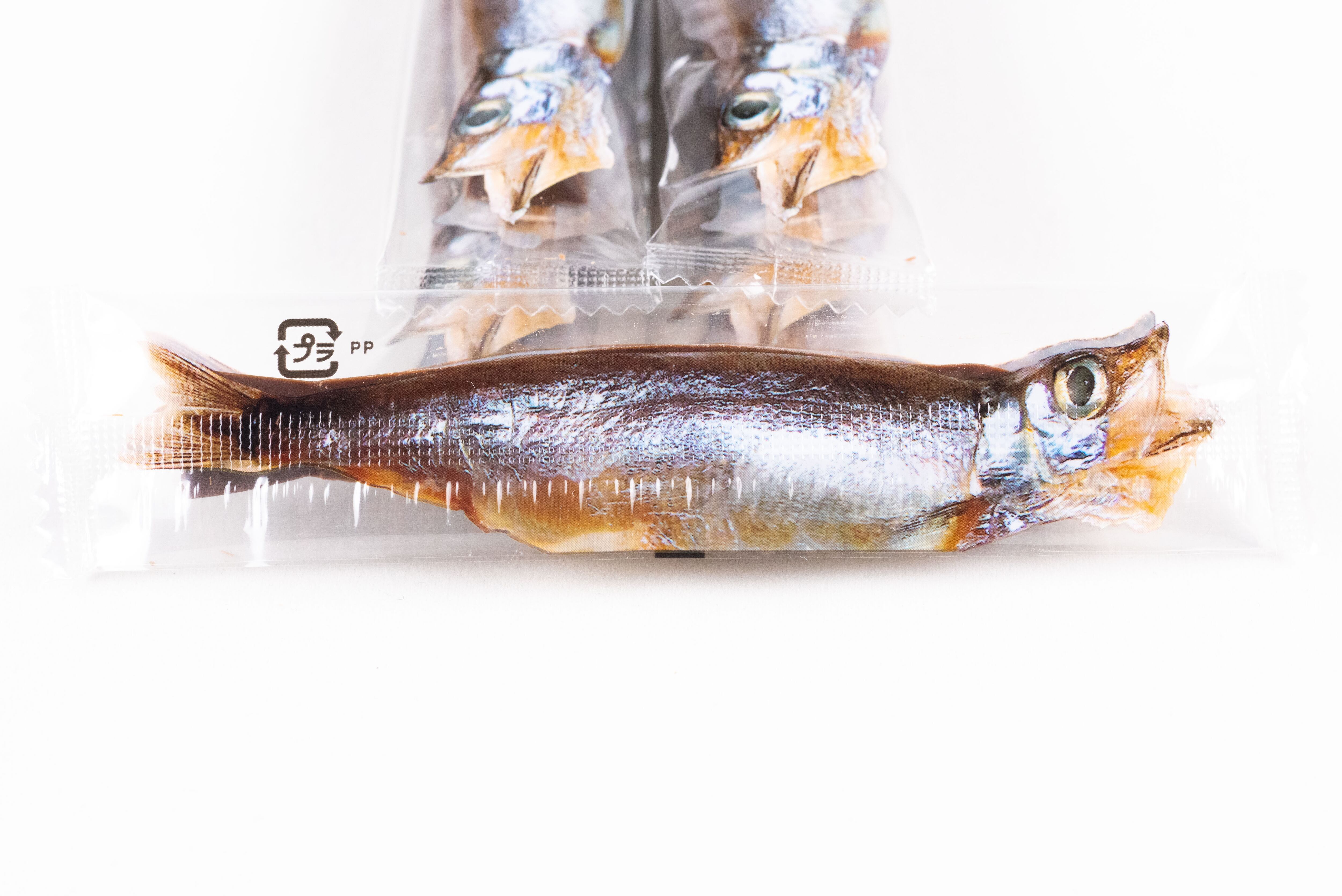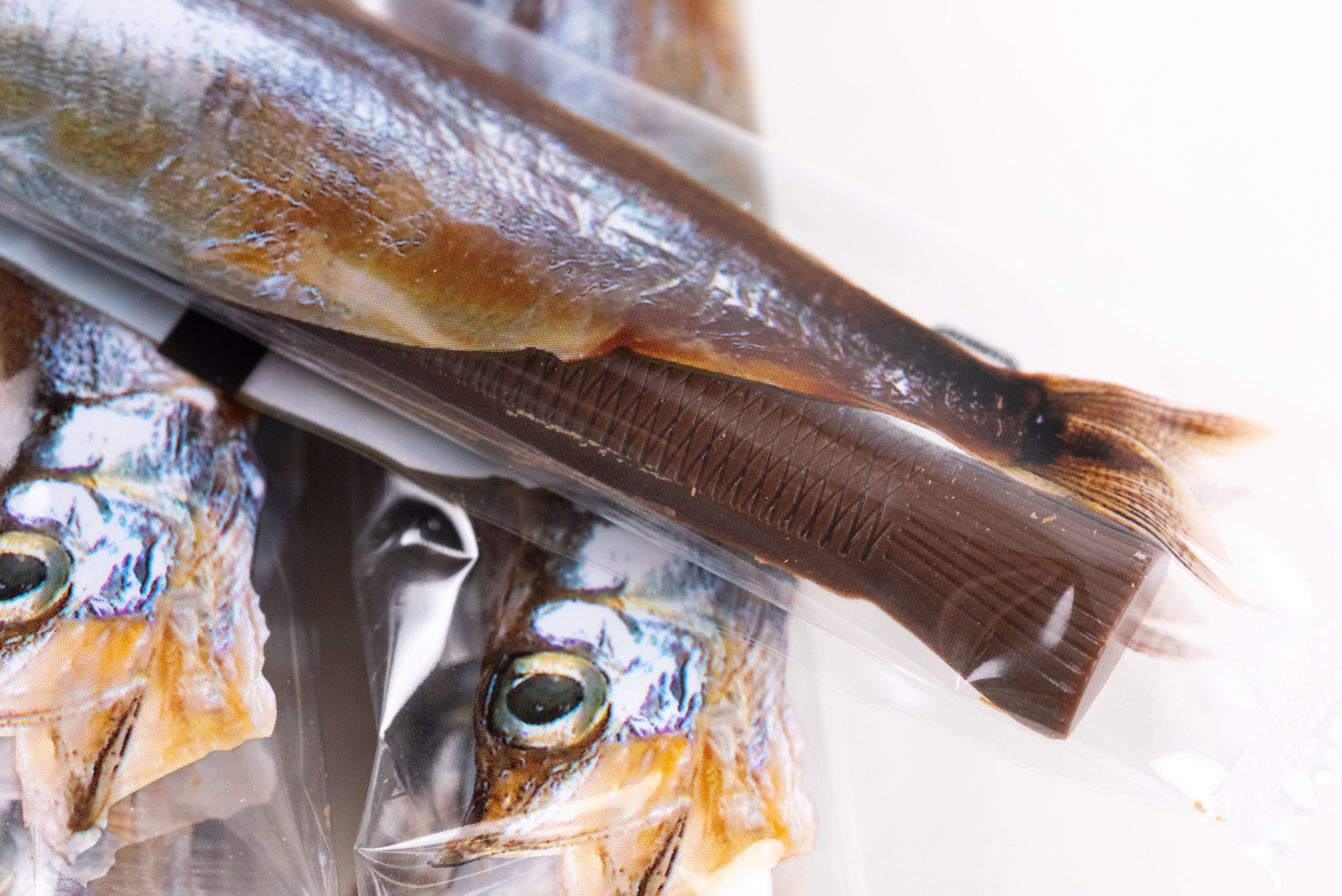 鮮魚店で売られているようなパッケージを開けると、中には魚の形を精巧に模した個包装のししゃもチョコが5本。