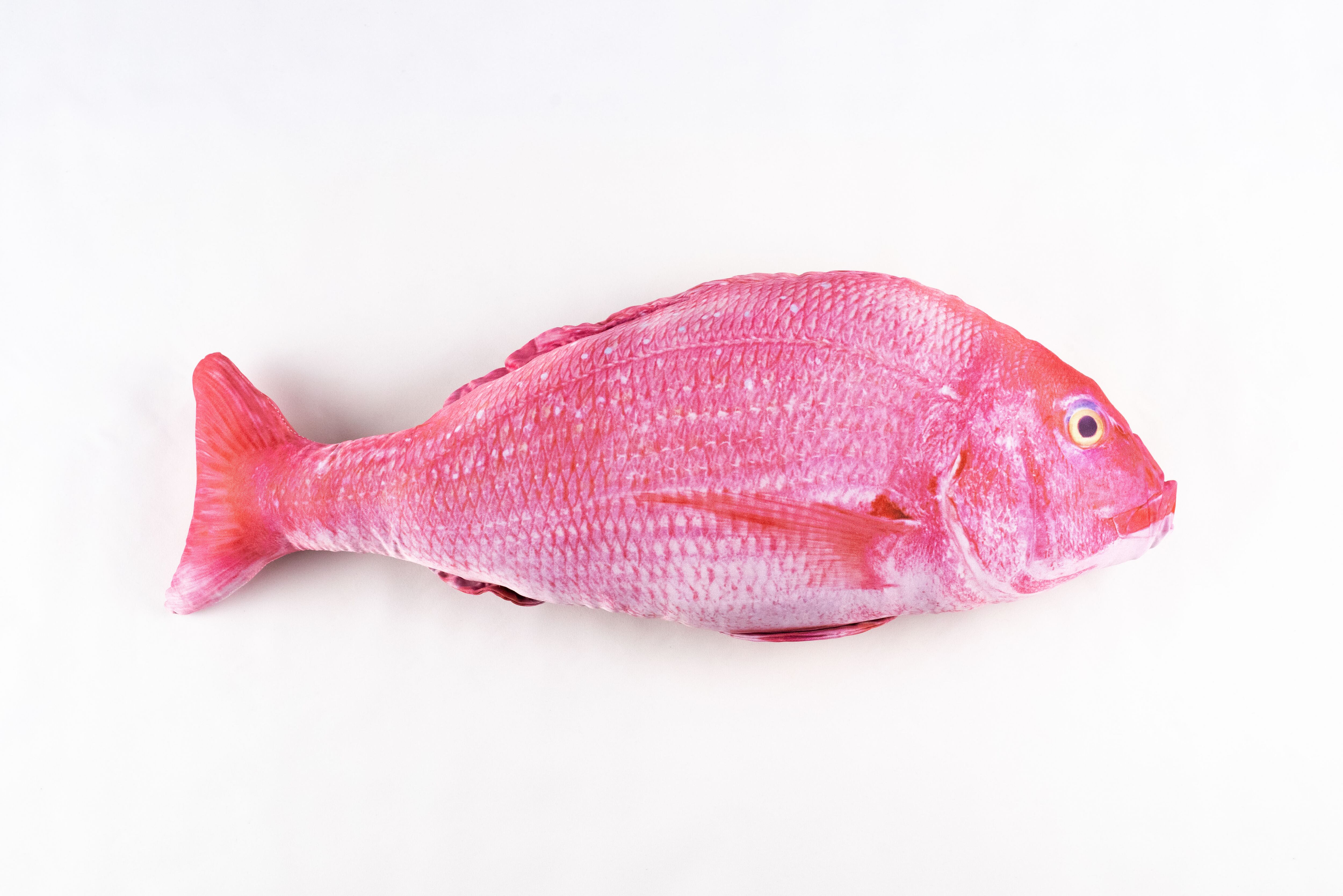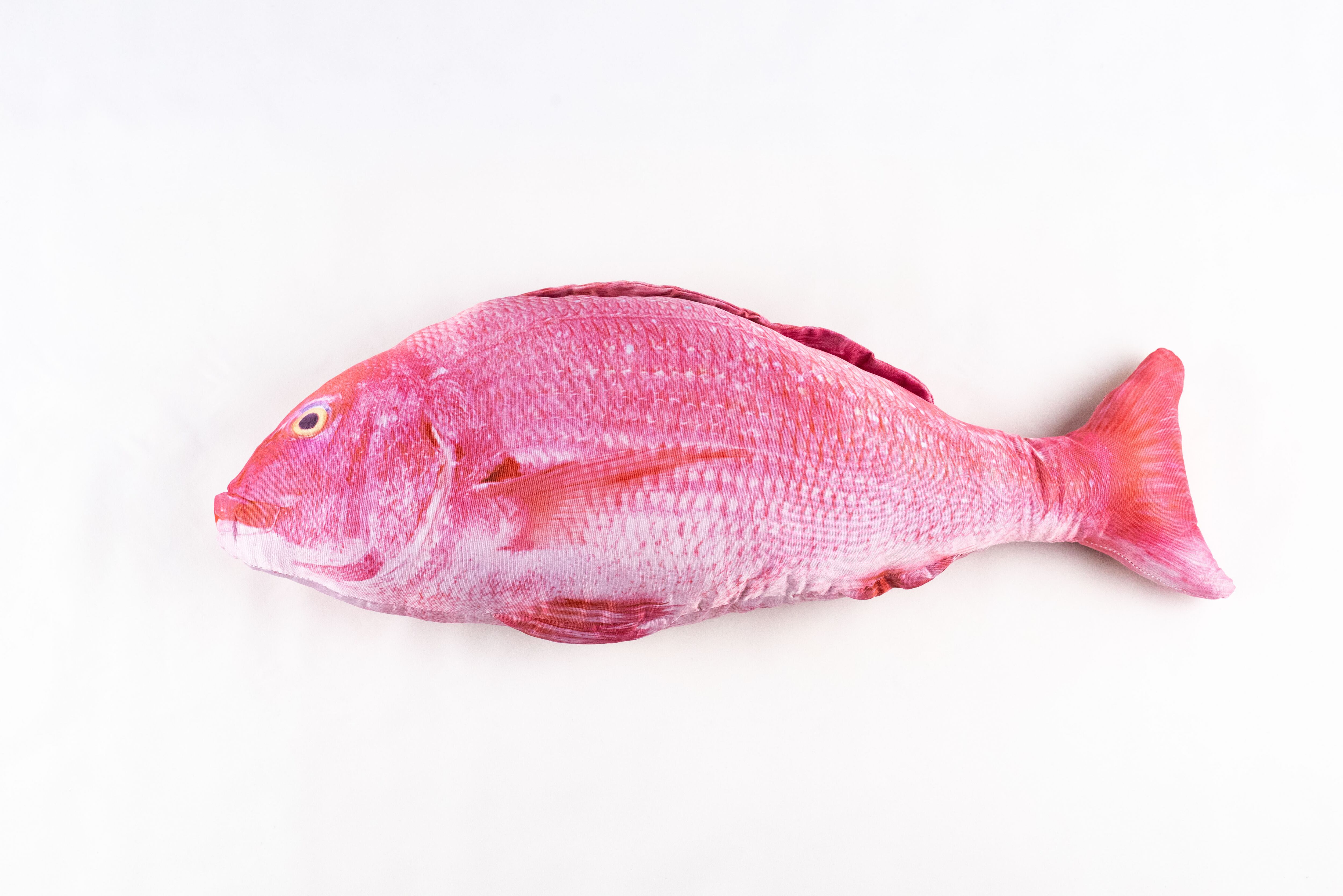 「特大 真鯛クッション」は、本物の真鯛と見紛うほどのリアルビジュアルと、約49cmのド迫力サイズが魅力です。